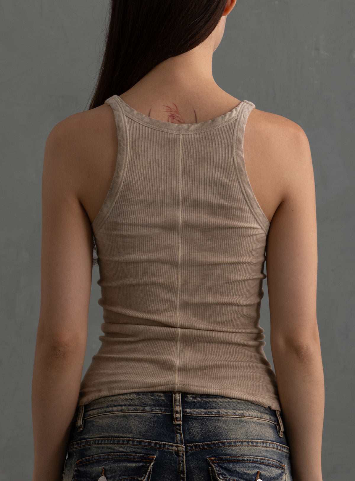 Super soft ribbed tank hand dyed in LA with an oil wash for a mechanic-chic look.