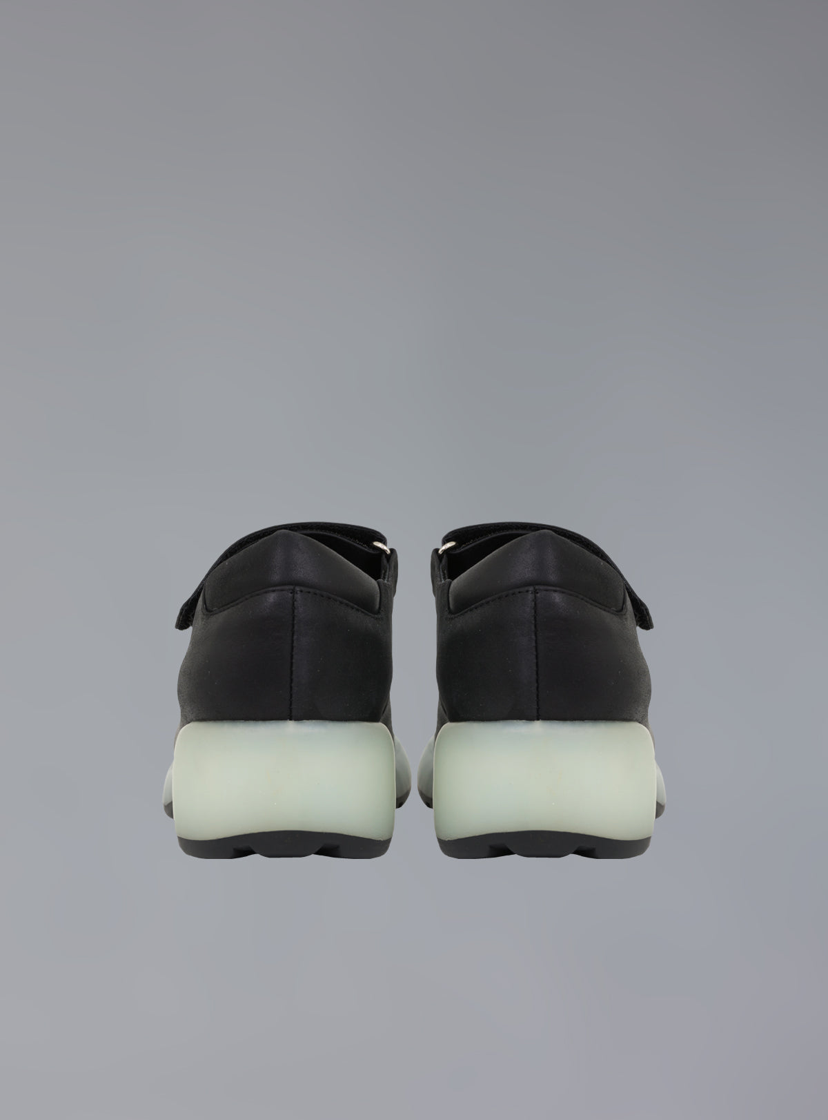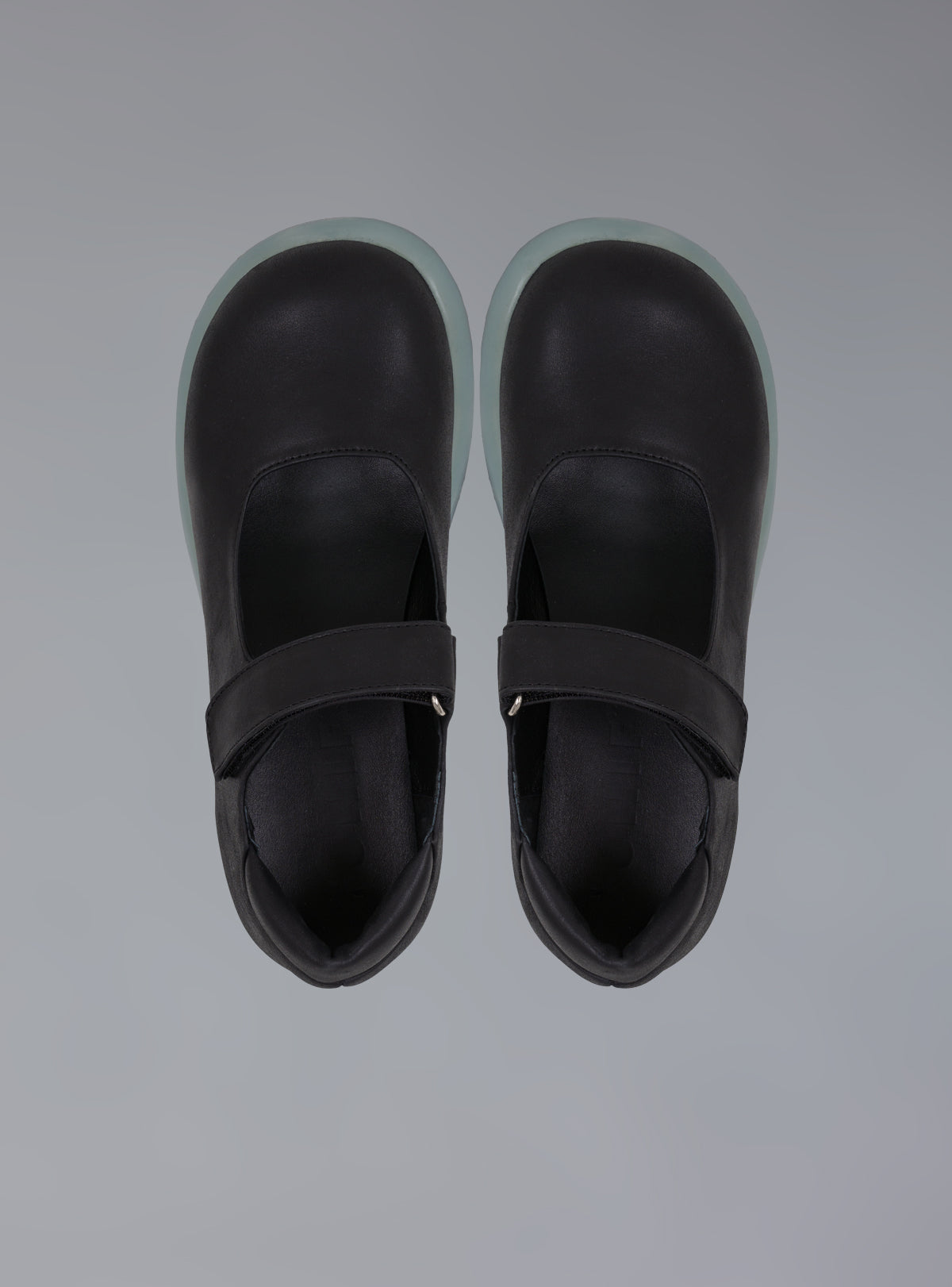 The Volta Mary Jane features a clear, solid rubber sole and an adjustable velcro strap. Super versatile and comfortable! Fit is true to size.