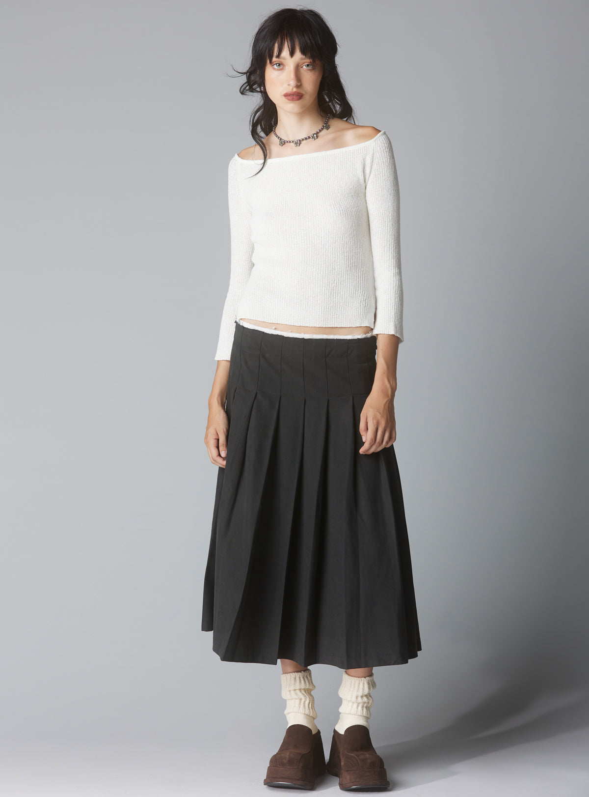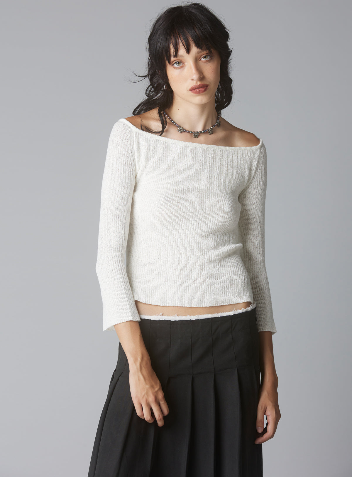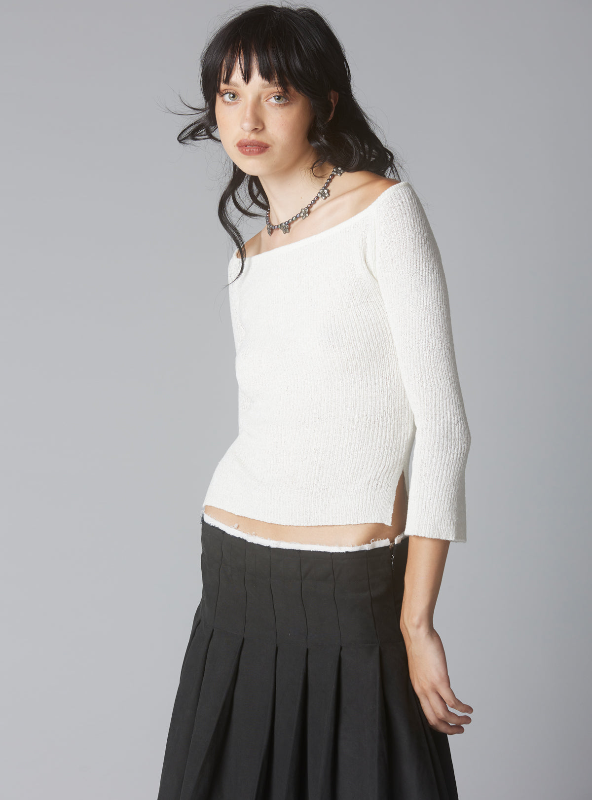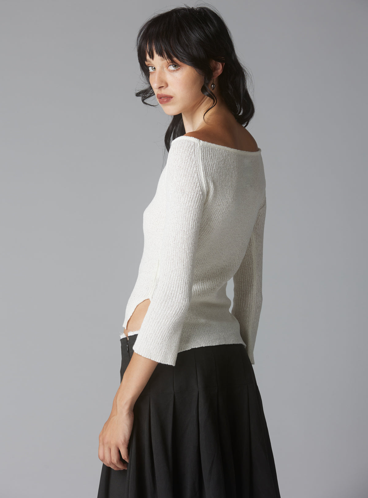 Classic off-the-shoulder top with side slits above the hips. Tailored fit for a clean and classy look. Also has a small flare at the end of the sleeves. Comes in multiple colorways.