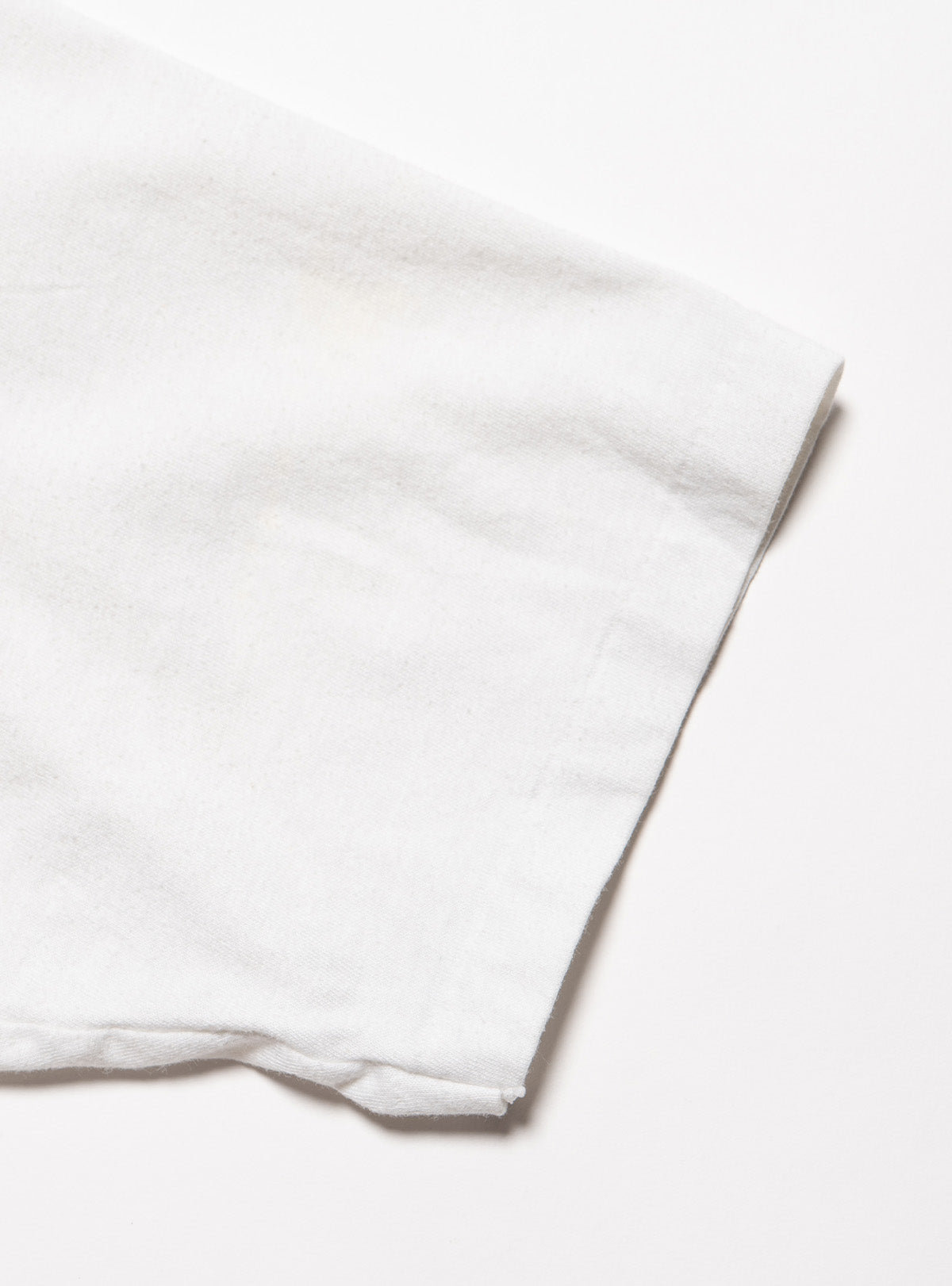 Hanes 50/50 Combed Cotton and Poly tee.  Blind stitching throughout.  Very soft and great color.