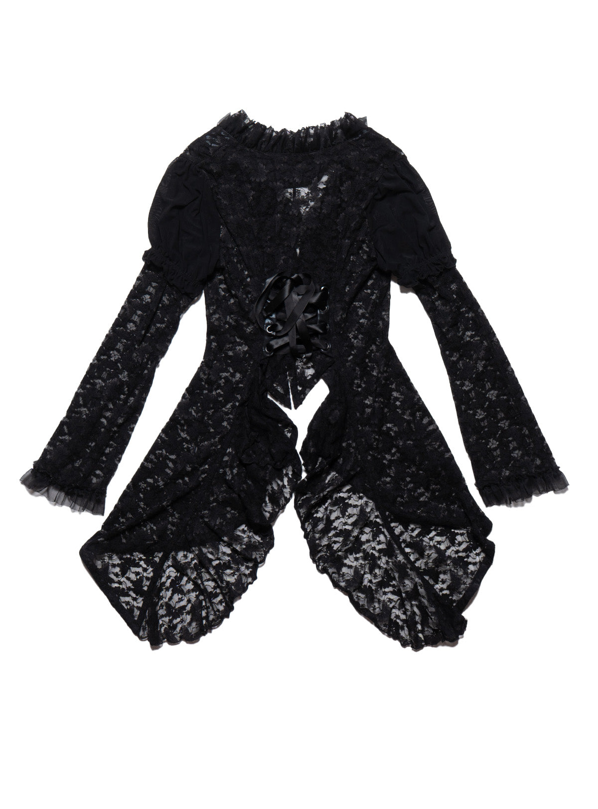Authentic Lolita Goth women's cut & sew black lace cardigan. Japanese brand: Frill by h.naoto