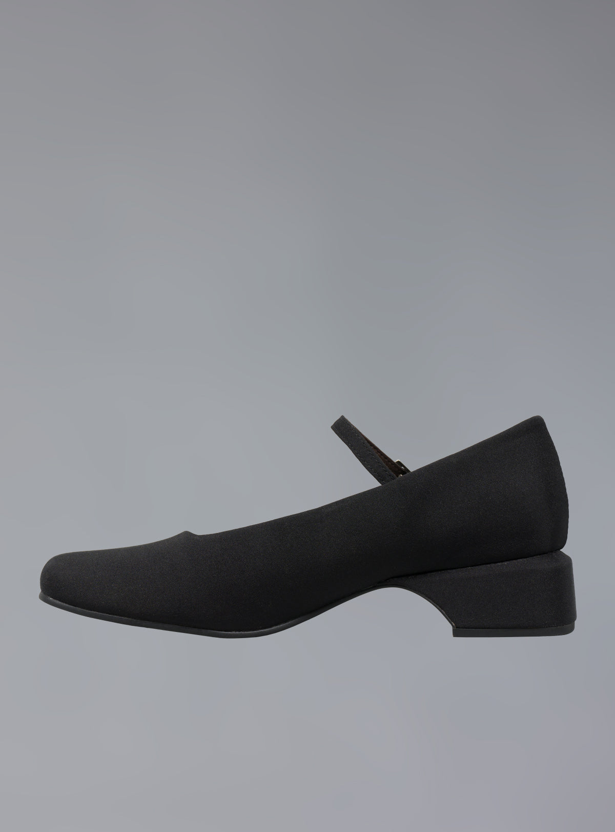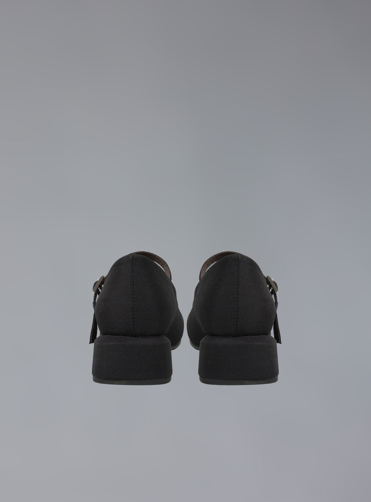 The Seph Mary Jane is a black satin, heeled mary jane with a blunt toe and an adjustable buckle at the ankle strap. Features contrast brown lining and a chunky heel measuring approx 1" tall. Fit is true to size.