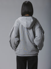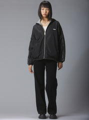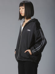 Reversible sportswear jacket (no sports required, or desired TBH). UNIF sportswear patch branding on the chest with reflective stripe detailing on the arms (blackside). Full zip front with front welt pockets and a hood. Fit is oversized but we recommend taking your normal size.