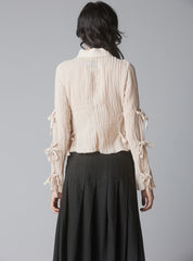 This Knot Top is crafted from a gauzy linen-cotton blend. The top features wooden buttons along the front and ties down the side seams and arms for added interest. It is slightly sheer and runs true to size.